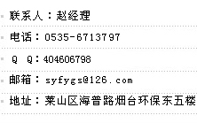 魯ICP備09088268號-1 ![]() 聯系人:趙經理 電話:0535-6713797 傳真:0535-6713797 |